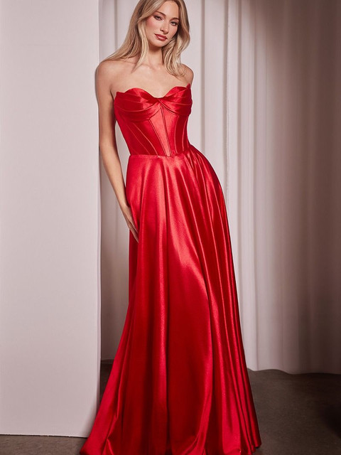 Ladivine CD378 Pleated satin strapless a-line prom dress